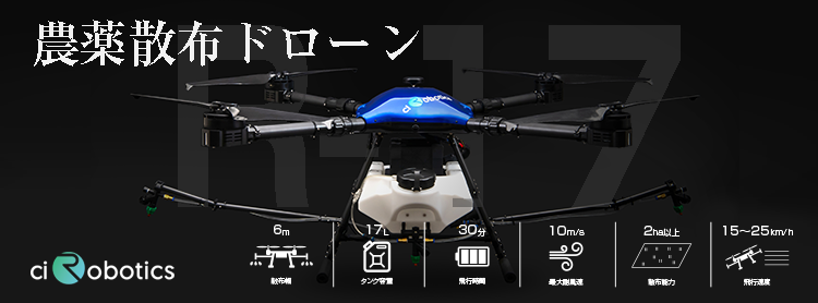 ciRoboticsオリジナルの農薬散布ドローンです。液体の農薬はもちろん、様々な粒形に対応した散布装置をオプションに備えます。