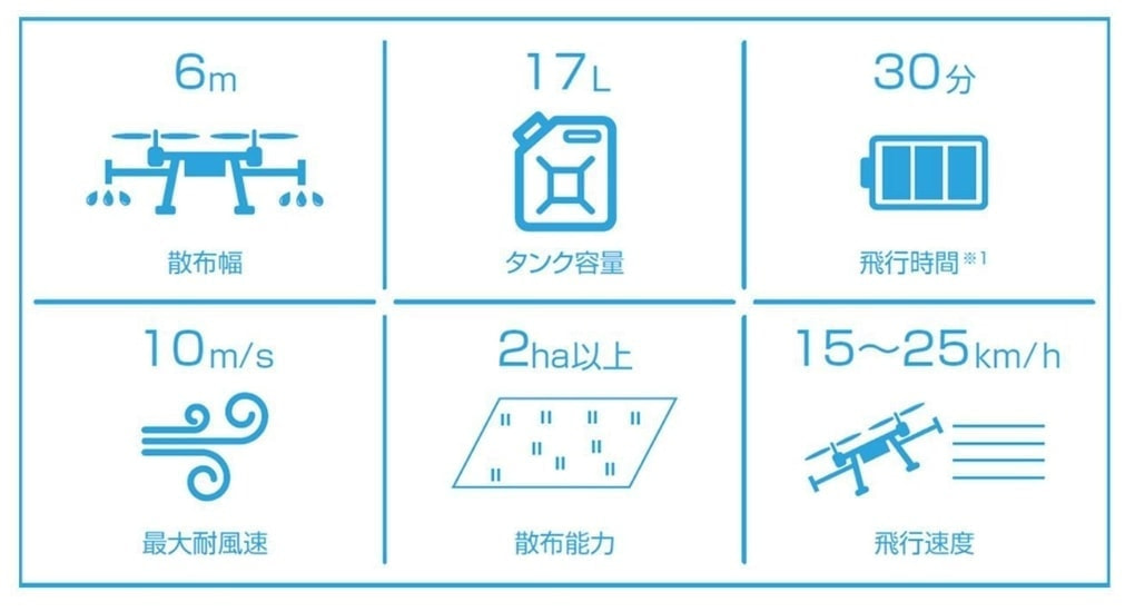 | 機体寸法 | 1,630mm×1,630mm×555mm(広げた状態) |