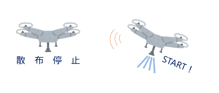 高度維持機能を使用した飛行です。基本的にすべての操作が手動になりますが、飛行速度に応じて散布量を自動調整することができます。また、前進・後進のみ散布し、横移動の際は散布を停止することもできます。