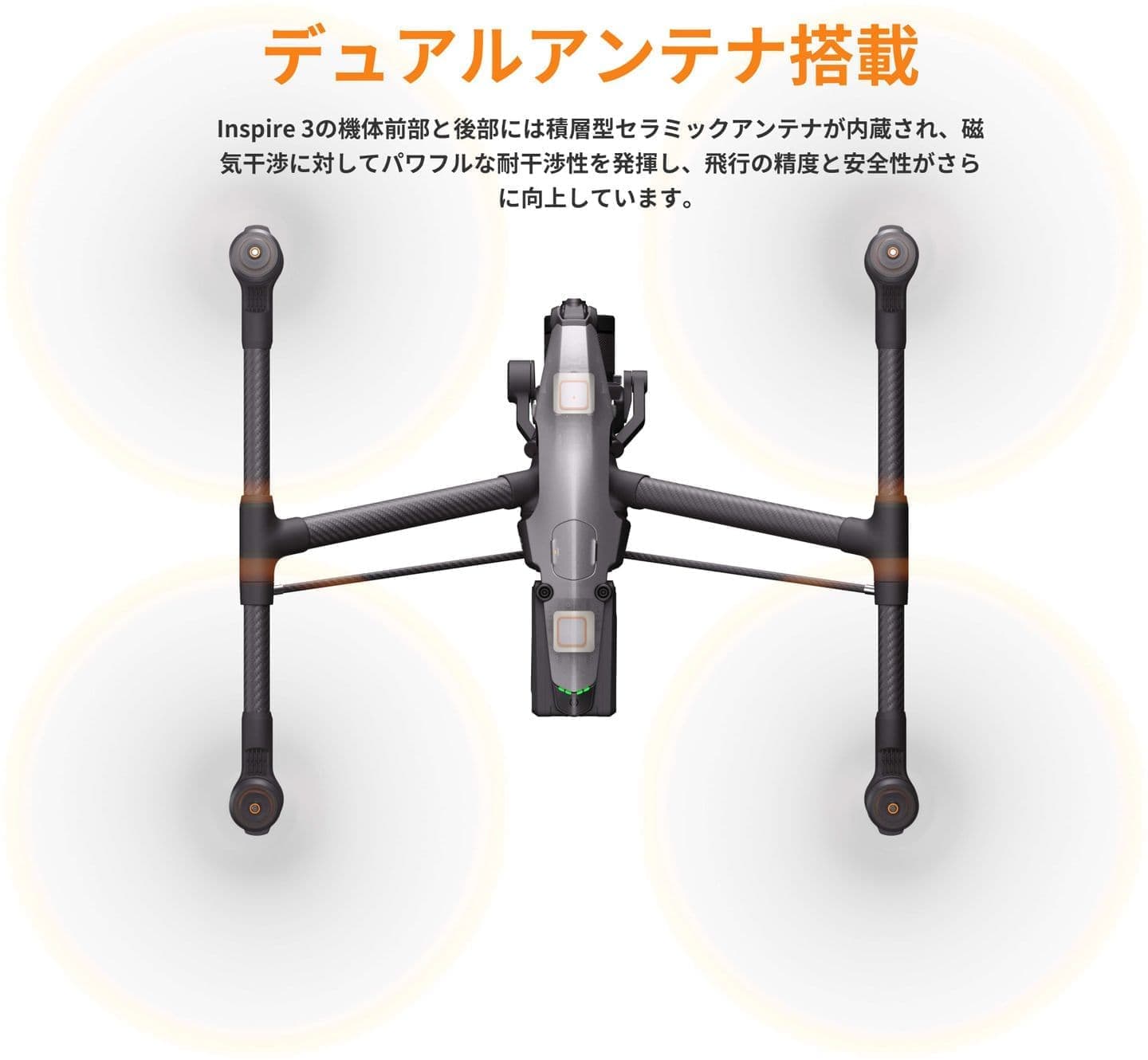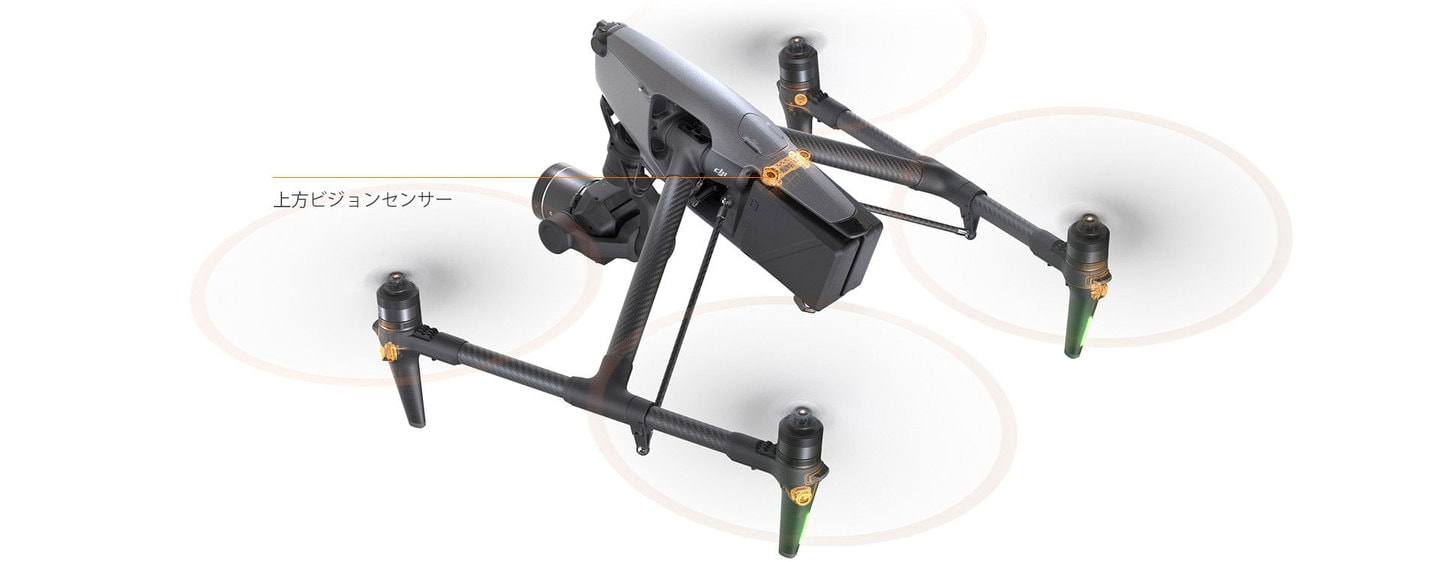 Inspire 3は、9個のセンサーを使った強力な全方向障害物検知システムが搭載され、あらゆる方向の障害物を検知し、飛行を包括的に保護します。[7]