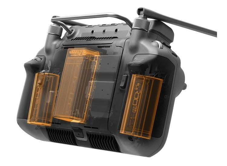 バッテリー充電ハブは刷新され、折りたたみ可能でコンパクトになり、優れた充電効率も兼ね備えています。8個のバッテリーをセットできます。急速充電モードでは、2つのバッテリーを同時に0%から90%までわずか35分で充電でき[21]、完全充電する場合でもたった160分で行えます。[21] 付属の65W USB-Cポートを使って、RC Plus送信機を充電することができます。