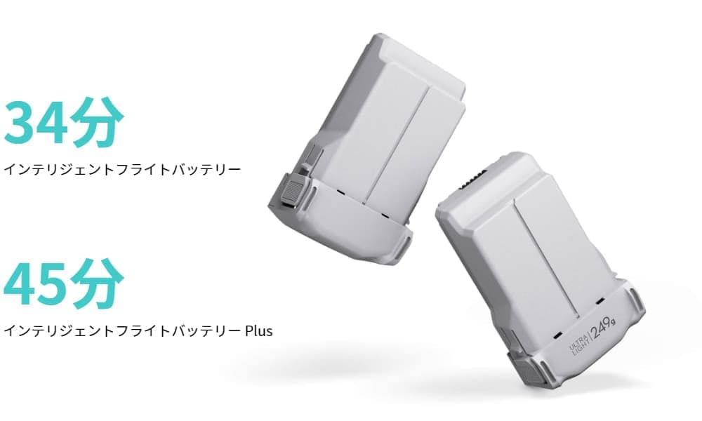 | 互換性 | DJI Mini 4 Pro インテリジェント フライトバッテリー、DJI Mini 3シリーズ インテリジェント フライトバッテリー Plus** インテリジェント フライトバッテリー Plusは、EU地域では販売していません。 |