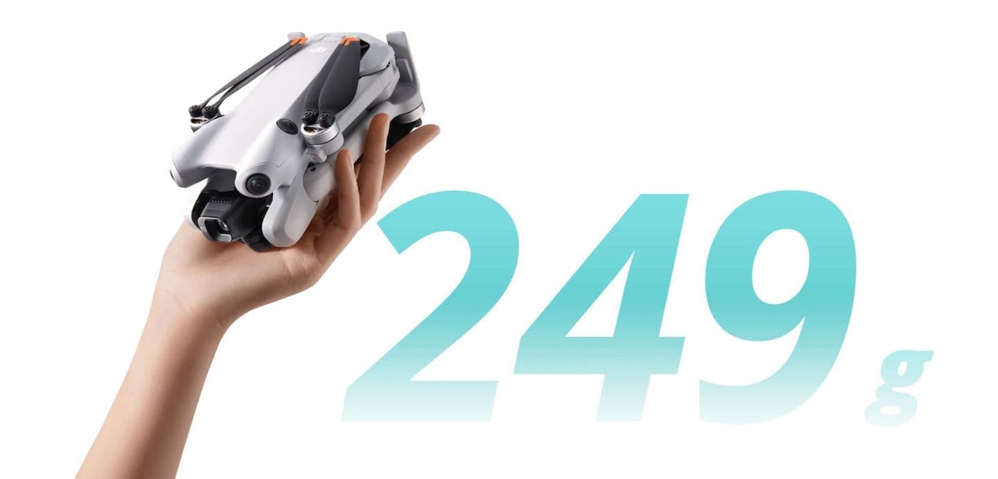 重量249 g未満のMini 4 Proは、いつでも携帯しやすいように設計されています[1]。