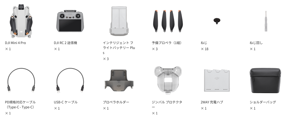 | 名称 | 【型式認証対応/非対応モデル】 DJI MINI 4 PRO Fly More コンボ Plus(DJI RC 2付属) |