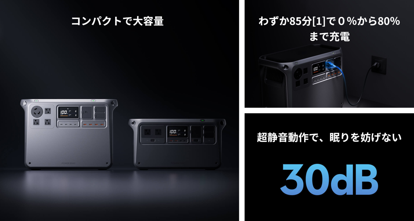 標準充電モードでは、DJI Power 2000は30dBを超えず、ほとんどの家庭用冷蔵庫よりも静かです。[13] 超静音性能により、夜間の通常の電力使用を妨げることなく、一晩でフル充電が可能です。