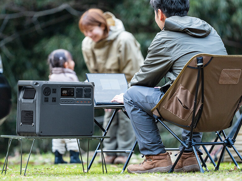 コンセントに挿すだけで簡単に充電でき、すぐに使用できます。家庭用電源に接続すれば、最大1500Wの急速充電に対応し、0%から80%まではわずか85分、満充電までは114分[1]で完了します。出発直前に充電を始めても、いつでも出発できるという安心感を与えてくれます。