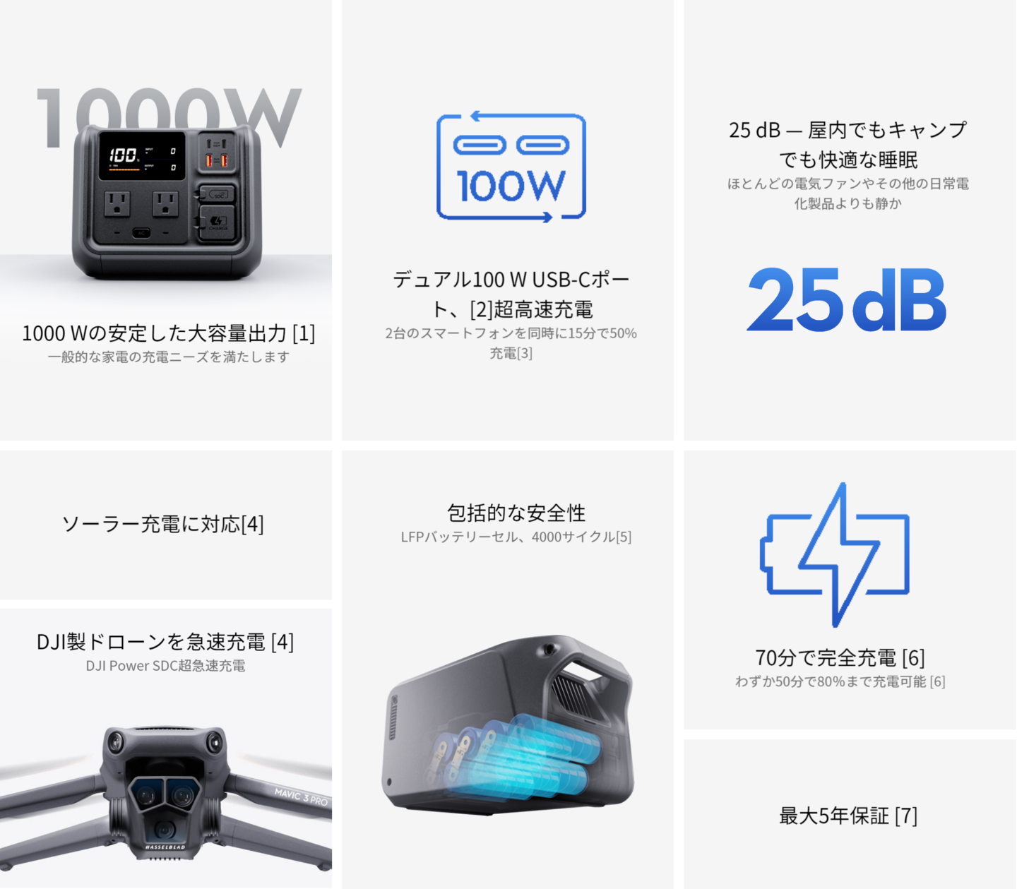 7.DJI Power 500本体をDJIストアでご購入いただくと、3年間の保証が付きます。登録を完了すると、さらに2年間保証期間が延長されます。詳細については、DJIストア内のカスタマーサービスまでご相談ください。