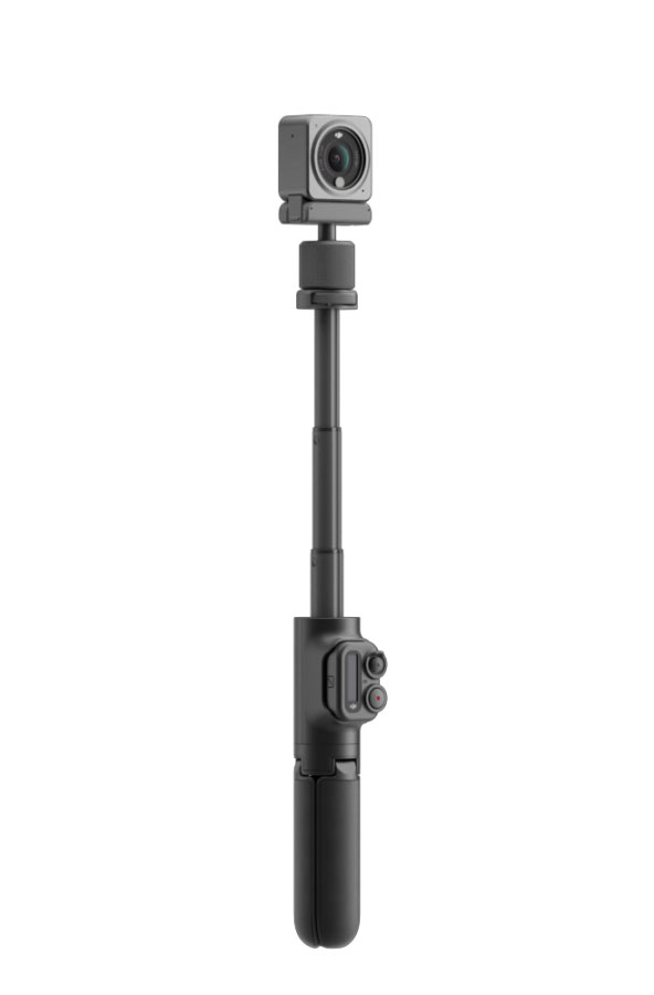 延長ロッド(リモコン付属)を使うと、大人数でのセルフィー撮影やAction 2の遠隔操作が可能になり、また、グリップがあるので安定した動画を撮影できます。クイックリリース式グリップは持ちやすく、延長ロッド、三脚、着脱可能なリモコンパッドが一つに統合されています。