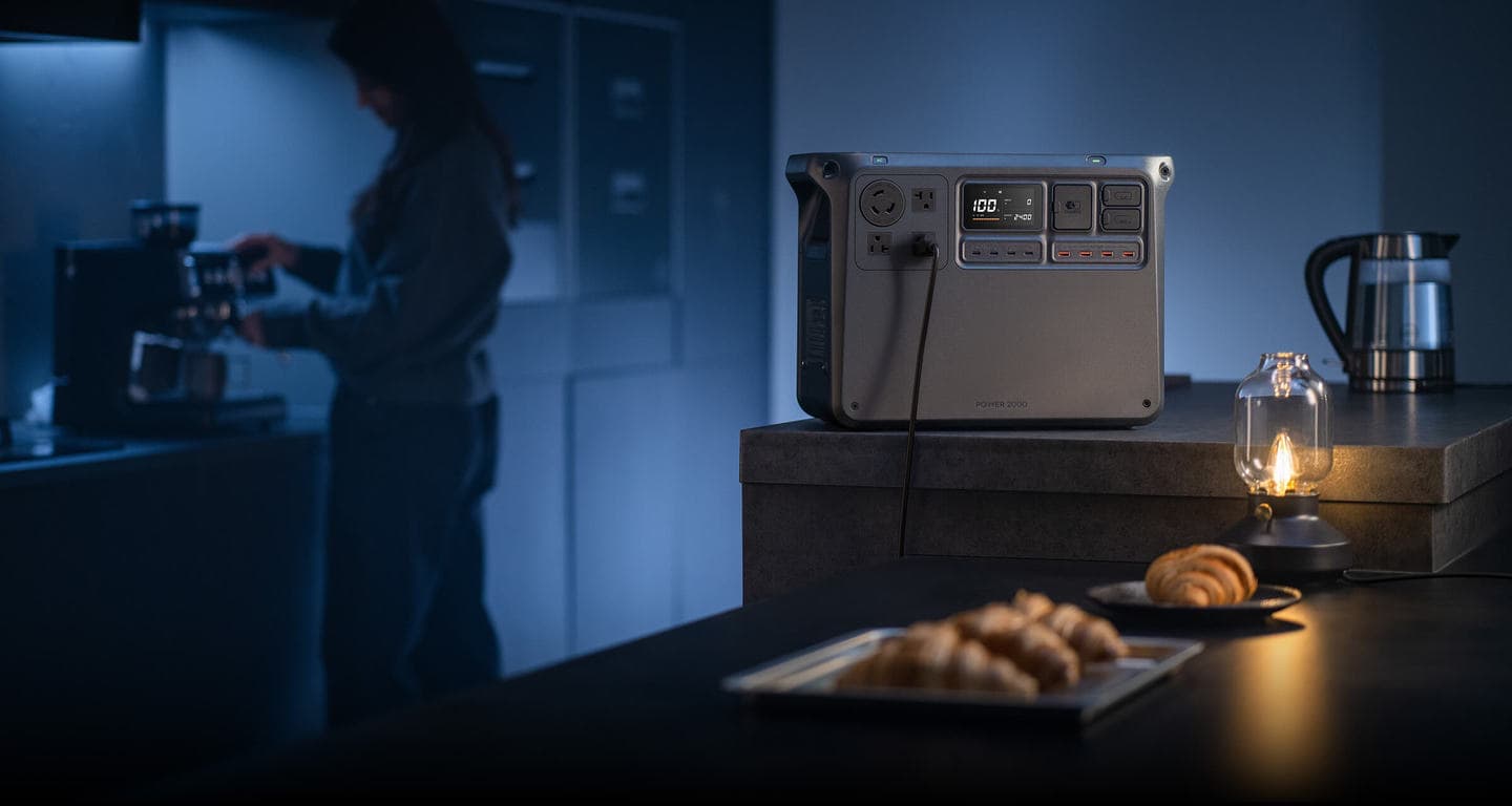 DJI Power 2000は、バッテリーが切れるまで安定して2700Wの連続出力を維持でき、IHクッキングヒーター、電子レンジ、オーブンなど99%以上の家庭用電化製品を駆動させることができます[7]。また、4つのACコンセント、4つのUSB-Cポート、4つのUSB-Aポートを備えており、複数のスマートフォンやタブレット、高出力機器を同時に手間なく充電できます。