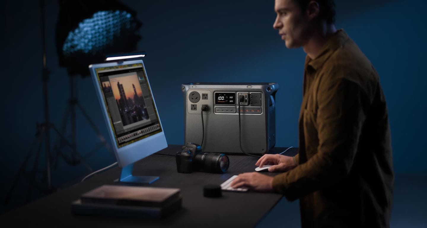 電化製品が電源の入ったDJI Power 2000にAC出力ポート経由で接続され、両方ともに家庭用電源から電力が供給されている場合、DJI Power 2000はデフォルトでUPS(無停電電源装置)モードに入ります。急な停電が起きた場合でも、DJI Power 2000なら、0.01秒以内に接続しているデバイスへ給電を開始でき[12]、継続した運転を可能にし、安心感を提供します。
