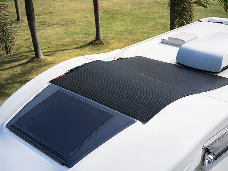 DJI Power 1.8kWソーラー/車内超急速充電器[5]は、ソーラーパネルとRV[26]のオルタネーターに同時接続でき、最大1200Wのソーラーパワーと600Wの連続車載電力を合わせて提供し、Power 2000を素早く再充電。フル充電にかかる時間はわずか約75分[21]です。キャンプ場に駐車中は、電力網とソーラーパネルの両方に接続してハイブリッド充電を行い、長距離移動中も安定した電力供給を確保できます。