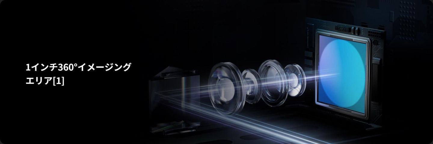 1. 360°コンテンツを撮影する際、Osmo 360のCMOSセンサーは4:3の比率を持つ1インチCMOSセンサーと同等のイメージングエリアを特徴としています。