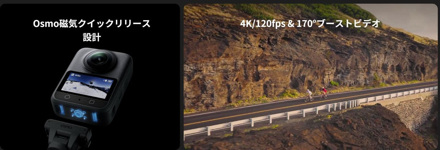 4.「DJI初」とは、2025年7月31日の発売日において、Osmo 360が、2つの4000 × 4000の正方形センサーを備え、ネイティブ8Kの360°動画を2.4 μmの大きなピクセルで撮影できるDJI初のカメラであることを指しています。