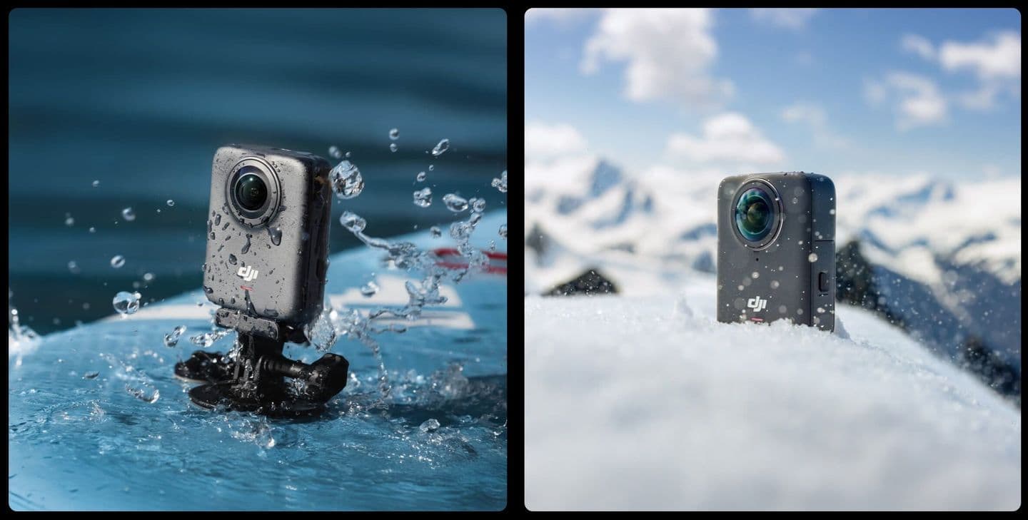 Osmo 360は過酷な条件下でも活躍するように設計されており、-20°Cという低温でも1.5時間以上の録画が可能です[10]。IP68の防水性能により、ケースなしで最大10メートルの水中撮影に対応します[11]。