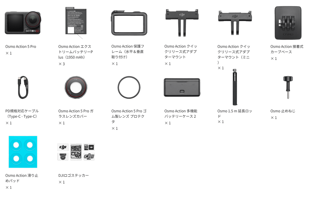 | 名称 | OSMO ACTION 5 PRO - スタンダードコンボ - |