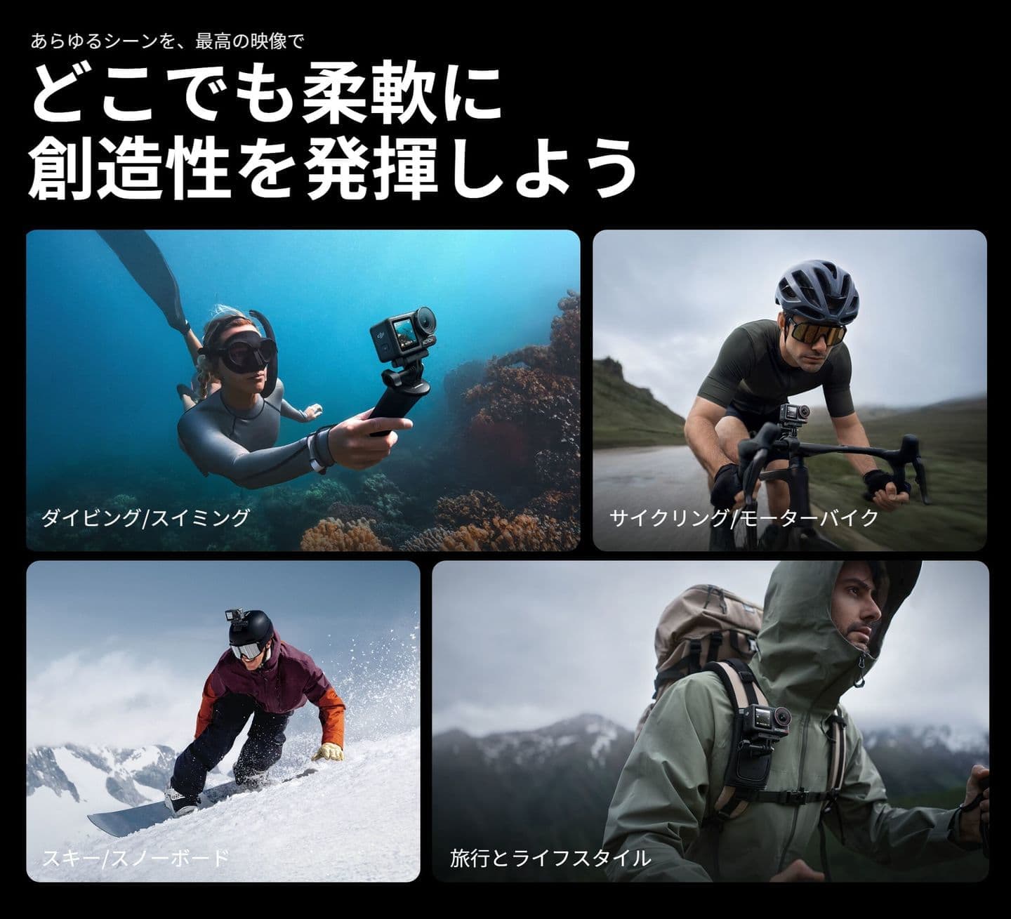 **Osmo Actionシリーズの製品比較データは、制御された環境下で収集されたものです。実際の使用体験は、状況により異なる場合があります。詳細は、DJI公式サイトの該当する製品ページを参照してください。