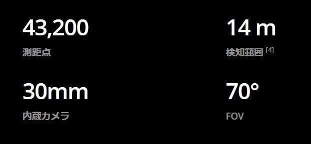 | ToFセンサー | 解像度:240×180 |