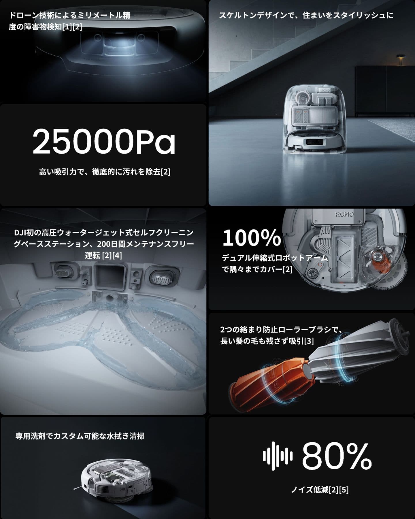 5.「DJI初」とは、2025年10月時点で、ROMOがDJI製品として初めて、3つの静音システムを採用したことを指します。
