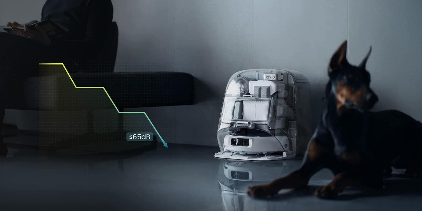 ベースステーションは、長いマフラーダクトとマフラー室を備えた3つの静音システムを搭載しています。集塵時の騒音を最大80%[2]低減するため、掃除中でも家族やペットの邪魔になりません。