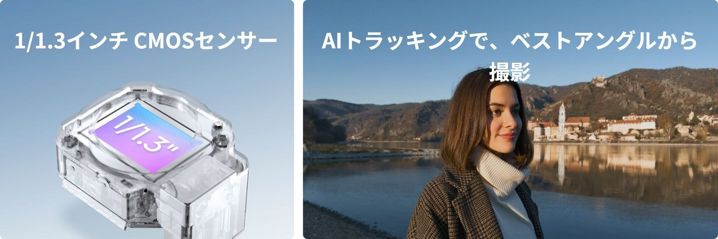 アスペクト比4:3のCMOSセンサーにより、縦向き映像にクロップしたとしても2.7Kの解像度を維持できる十分な余裕があり、スマートフォンでの視聴向けに最適化されています。これにより、投稿前にトリミング編集する必要がなく、SNSですぐに映像を共有できます。