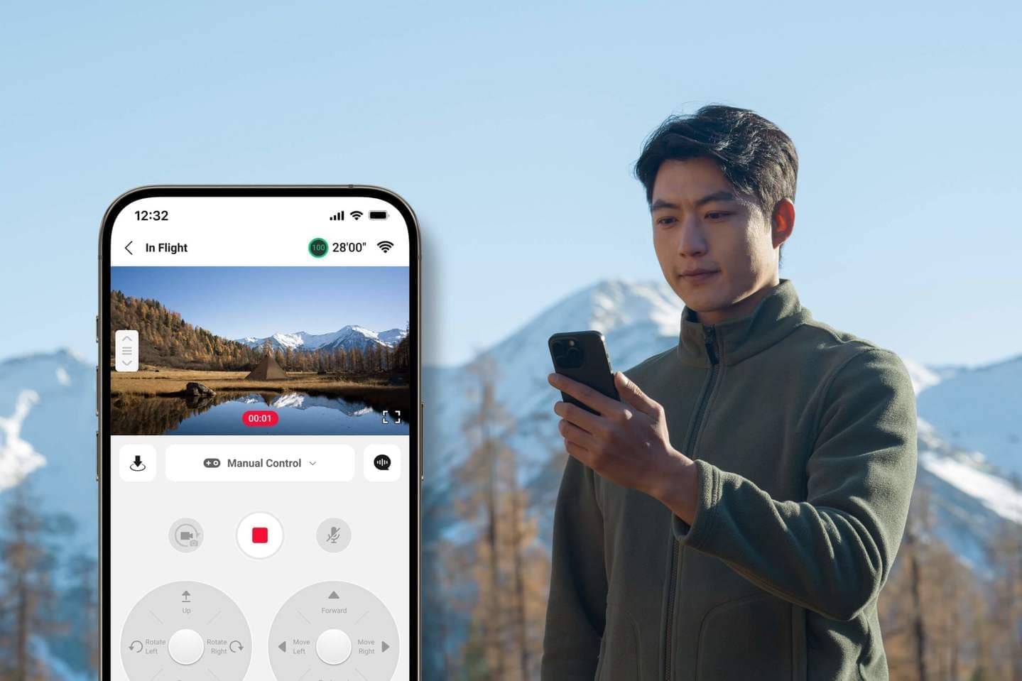 Wi-Fi Directを使用してDJI FlipをスマートフォンのDJI Flyアプリに簡単に接続でき、新しい縦型画面インターフェースで片手操作が可能です。これにより、さまざまな撮影モードを切り替えることができます。