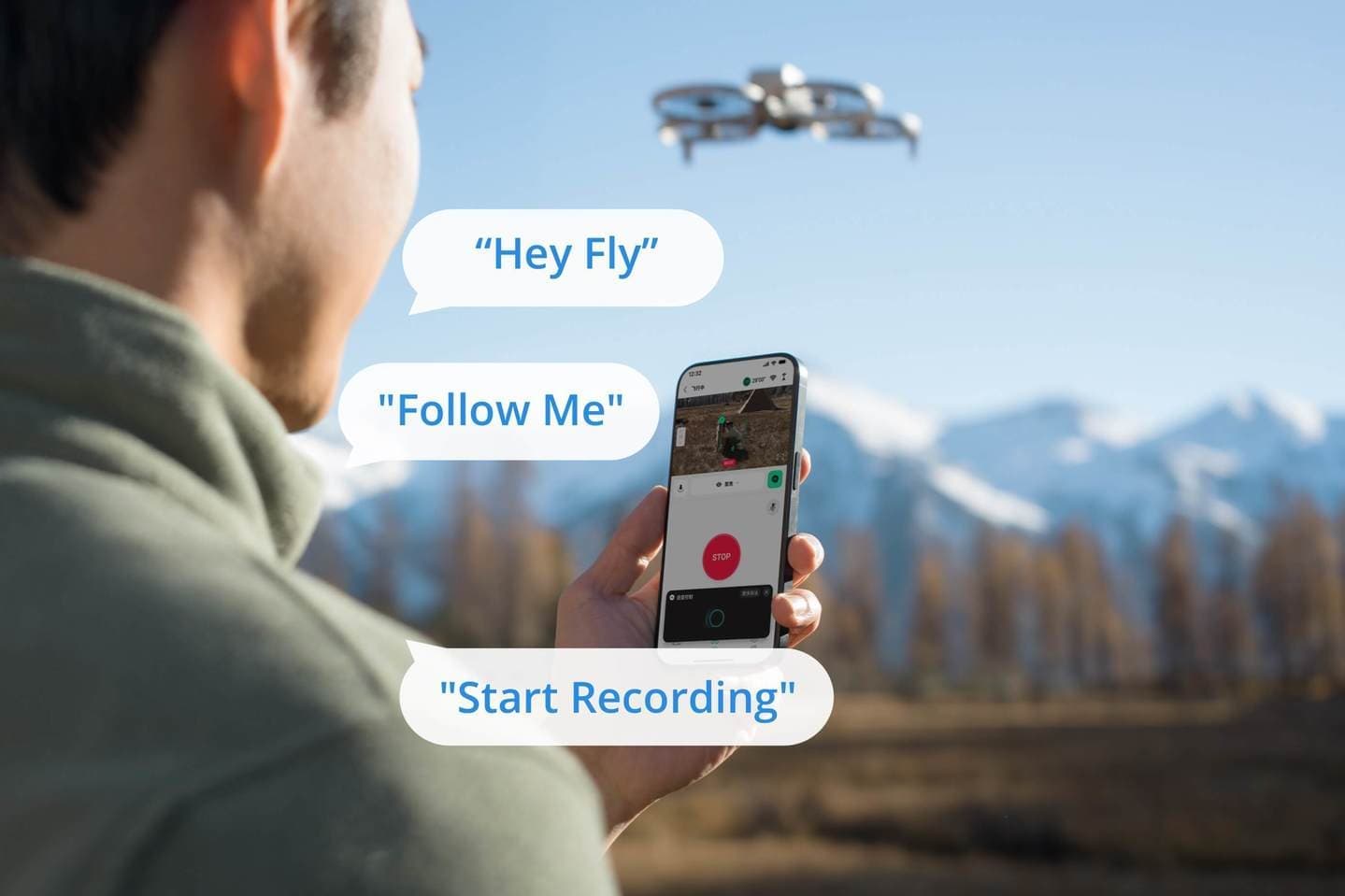 「Hey Fly」 - この言葉でDJI Flyアプリを起動すると音声制御が有効となり、音声による飛行指示でDJI Flipを操作できます[13]。スマートフォンに接続すると、音声を捉えながら、プロペラノイズを自動的にフィルタリングし、ノイズをスマートに低減します。この機能により、自分一人ででもコンテンツの音声収録を行えます。