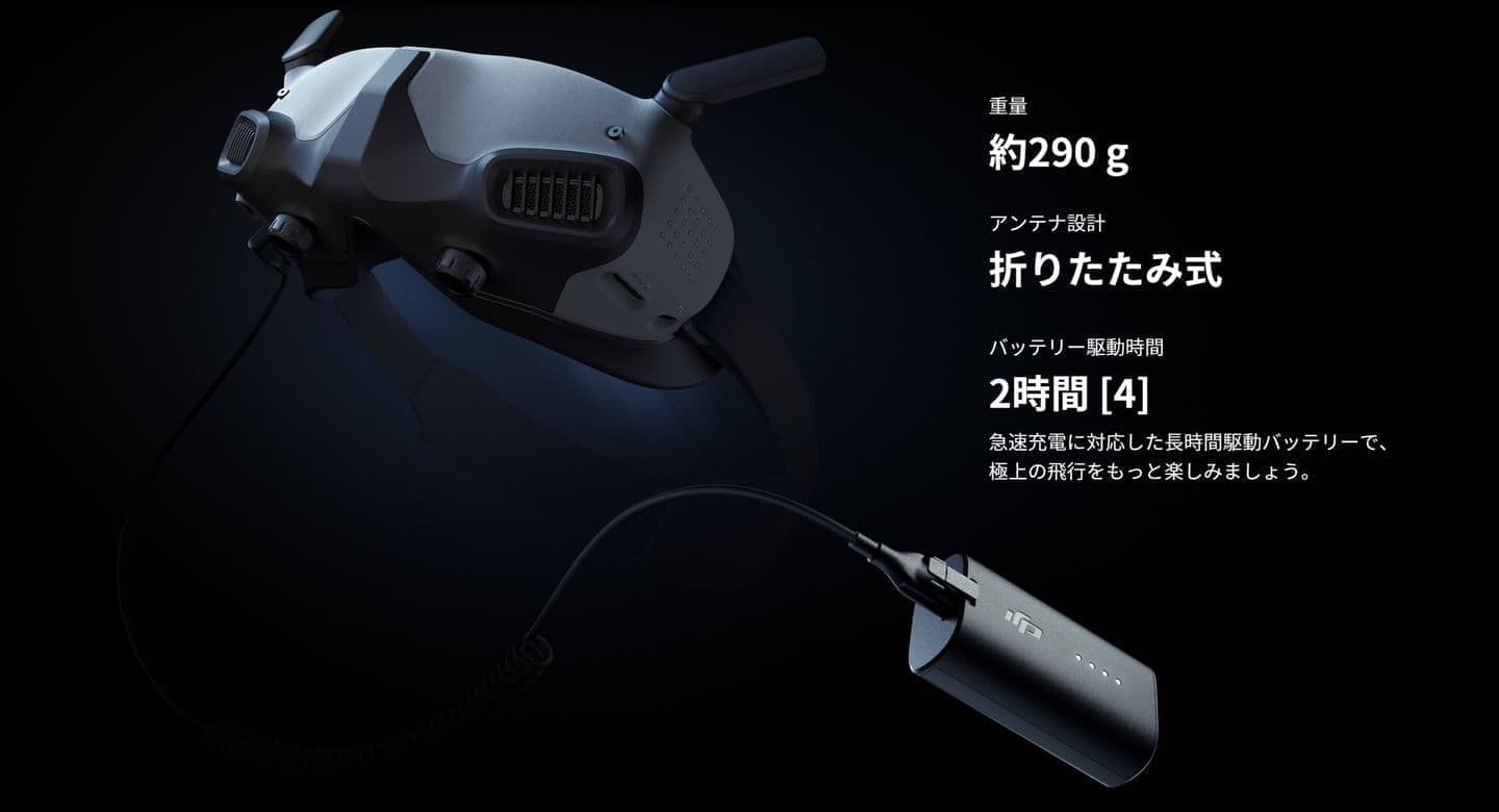 | 電源入力 | DJI Goggles 2 バッテリー |