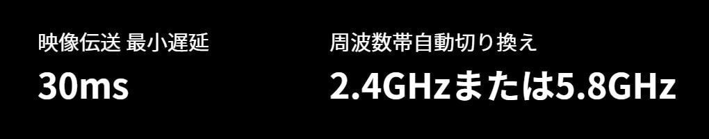 | 映像伝送遅延 [3] | 1080p/100fps映像伝送:30 msの低遅延。 |