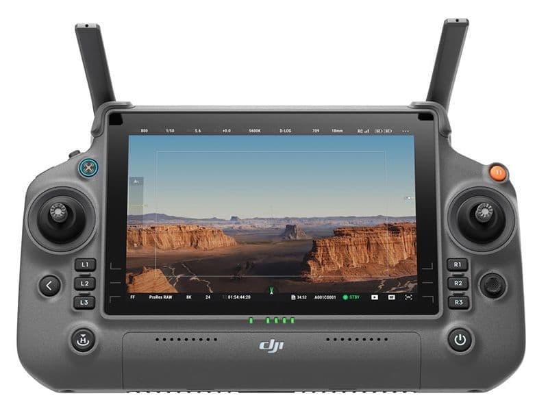 Inspire 3には、7インチ1200ニトの高輝度モニターが搭載されたプロ向け送信機DJI RC Plusが同梱され、屋外でもクオリティの高いモニタリング体験を実現します。送信機には、HDMI出力ポートや本体の全面、背面、上部に複数のボタンやダイヤルが搭載されているため、素早く直感的な操作が行えます。ボタン機能は好みに合わせてカスタマイズできるため、よりスムーズに操作できます。