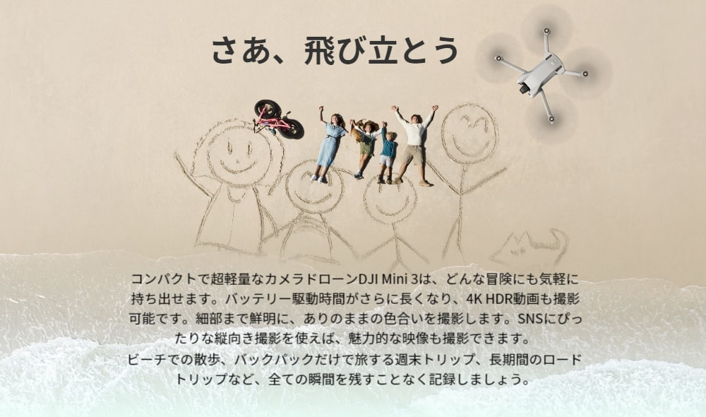 **** DJI Mini 3は、使用前に、DJI Flyアプリを使ってアクティベーションする必要があります。