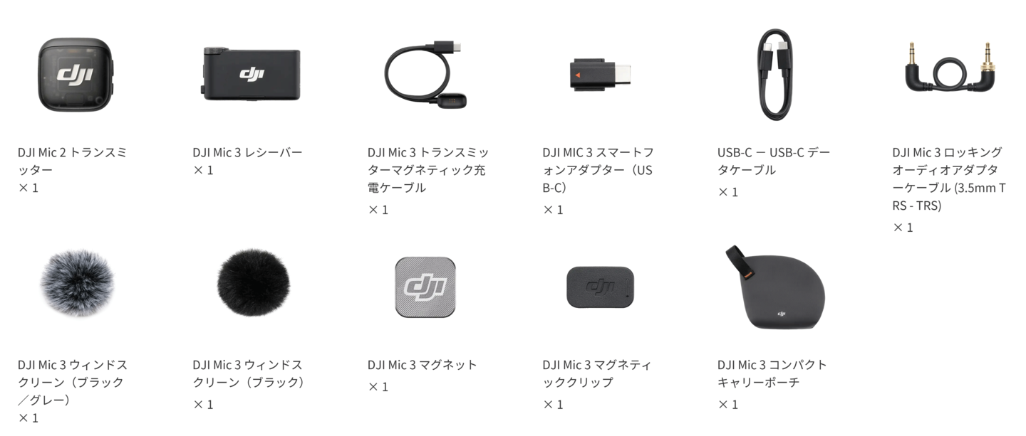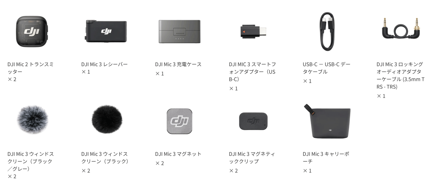 | 名称 | DJI MIC 3(2TX × 1RX + 充電ケース) |