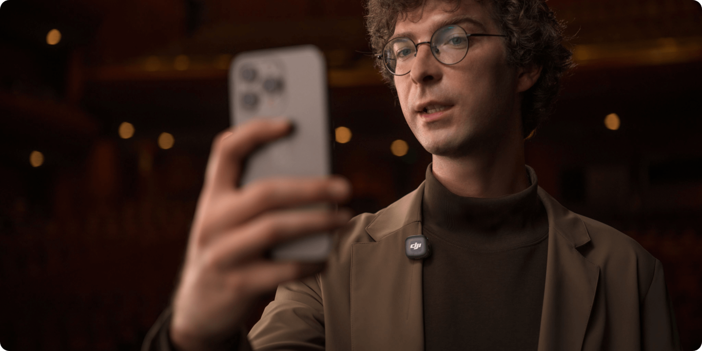 レシーバーは不要です—トランスミッターはBluetoothでスマートフォンに直接接続することができるため、お気に入りのサードパーティの録音またはライブ配信アプリで簡単に使用できます[21]。DJI Mimoアプリを使用すると、設定の調整やファームウェアの更新を一か所で行うことができ、セットアップと操作が迅速かつ簡単になります。