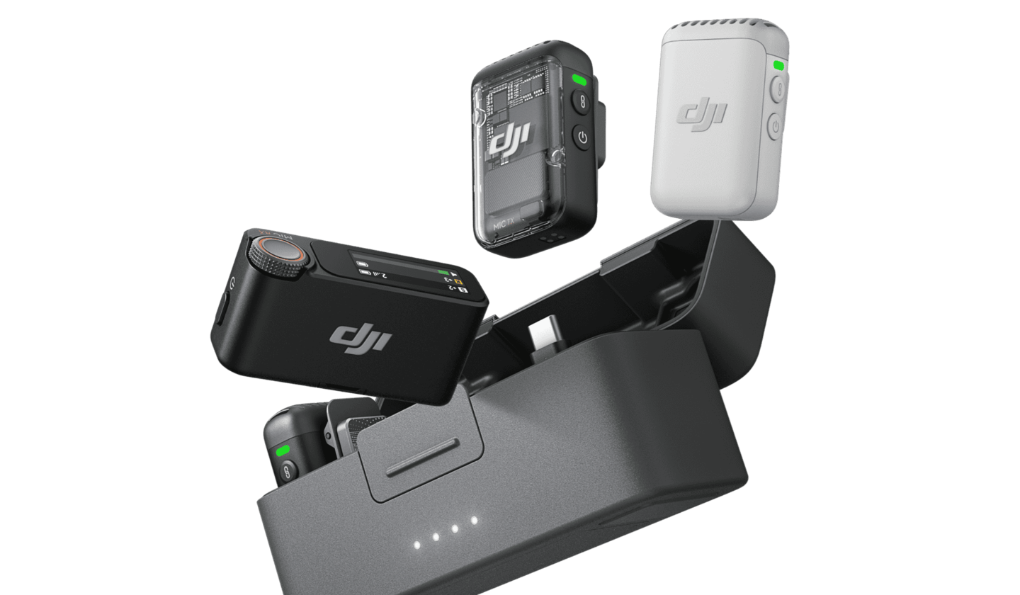 3.DJI Mic 2(トランスミッター×2 + レシーバー×1 + 充電ケース)コンボとDJI Mic 2(トランスミッター×1 + レシーバー×1)コンボに同梱されるトランスミッターの色は、シャドーブラックです。DJI Mic 2 トランスミッター(パールホワイト)は別売です。