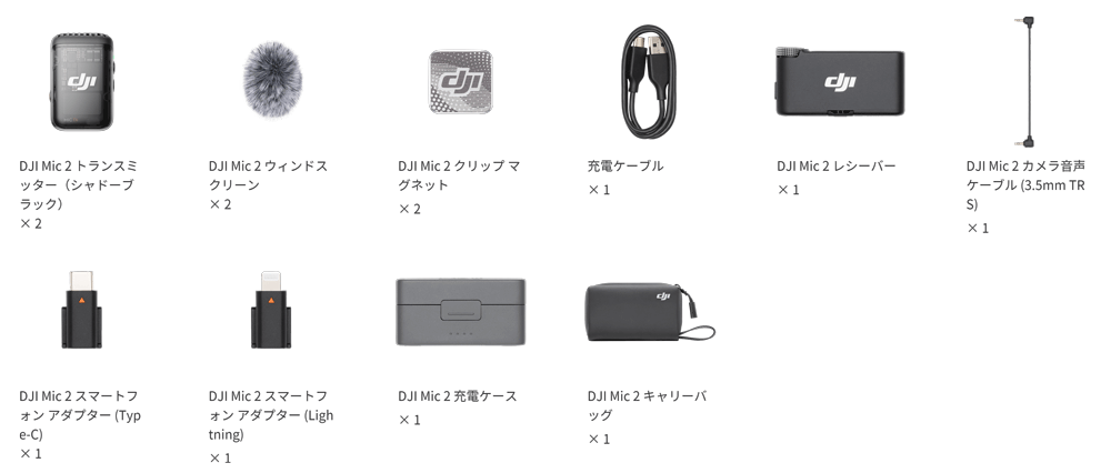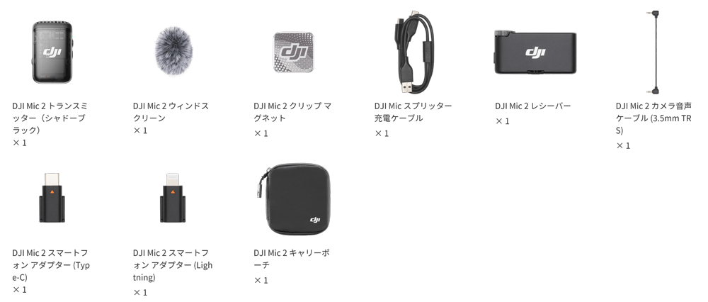 | 名称 | DJI MIC 2(2TX + 1RX + 充電ケース) |