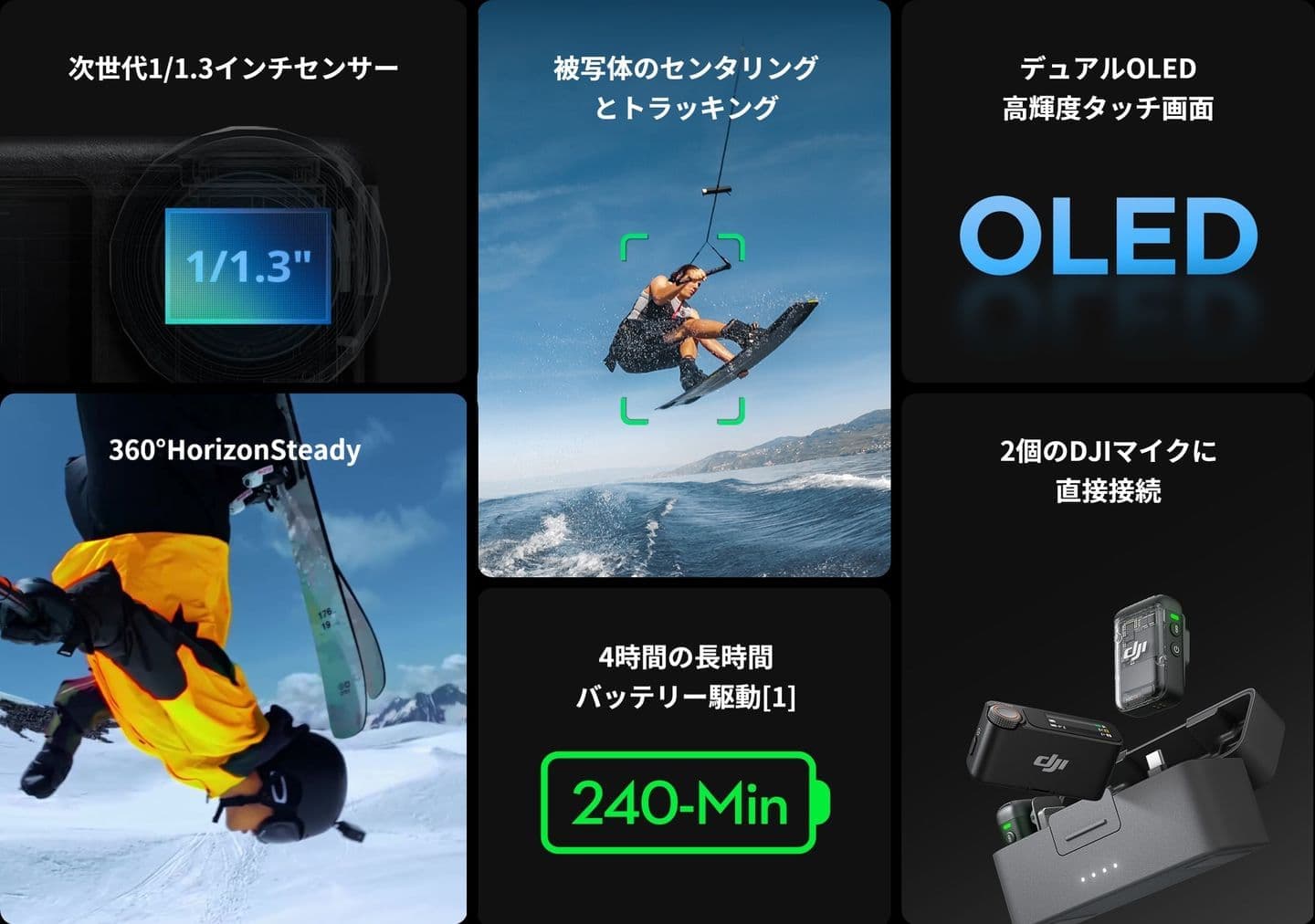 **Osmo Actionシリーズの製品比較データは、制御された環境下で収集されたものです。実際の使用体験は、状況により異なる場合があります。詳細は、DJI公式サイトの該当する製品ページを参照してください。