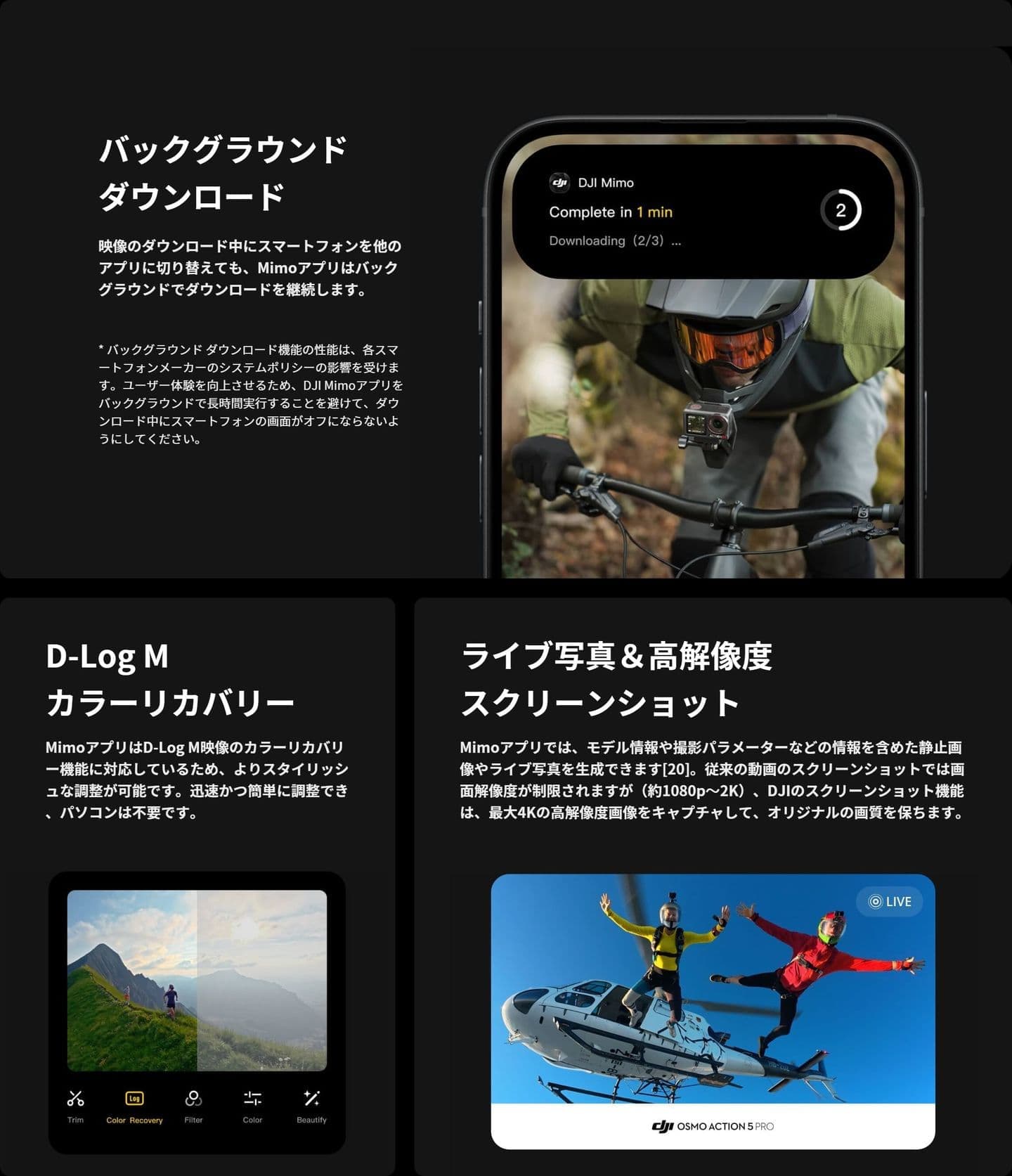 | 取扱説明書 | 下記よりダウンロード OSMO ACTION 5 PRO ダウンロードページ |
