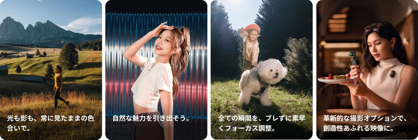 Pocket 3は、クリエイティブなモードや機能を多数搭載し、あなたのインスピレーションを最大限に刺激します。簡単なタッチ操作だけで、スピンショット、モーションラプス、デジタルズーム、パノラマ撮影などを行えます。