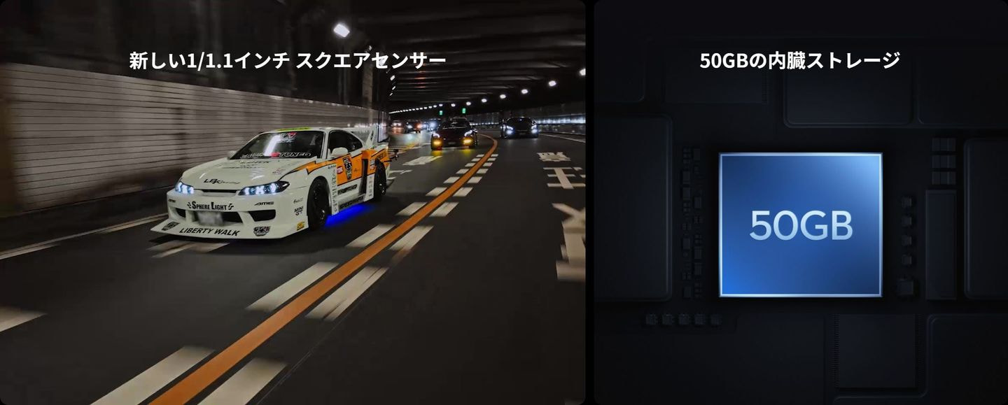 50 GBの内蔵ストレージを備えているため、メモリーカードが手元になくても、安心して撮影を続けられます。