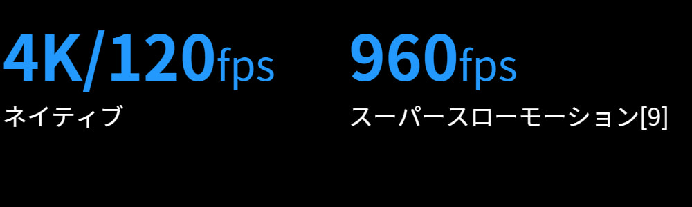 | スローモーション | 4K:4倍 (120fps) |