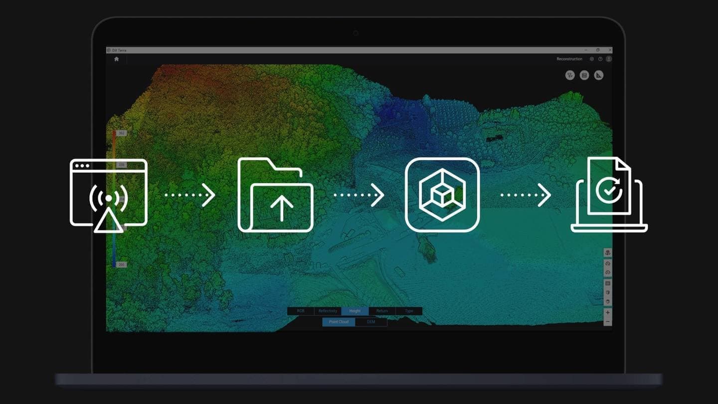 DJI Terraに点群データをインポートすると、効率的で信頼度の高いワンストップ後処理を実現します。点群の軌跡計算と精度の最適化後、一回クリックするだけで、標準フォーマットの3D点群モデルを生成します。DJI Terraでグラウンドポイントの種類を分類後、DEMデータを出力できます。[精度コントロール/チェック]機能を使用して、点群の品質を分析できます。