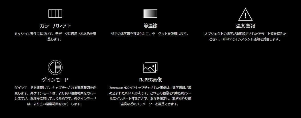 Zenmuse H20Nは、スターライトセンサー1をズームカメラと広角カメラに統合します。これをデュアルズームサーマルカメラとレーザー距離計と組み合わせると、さまざまなハイブリッドペイロードを利用できます。