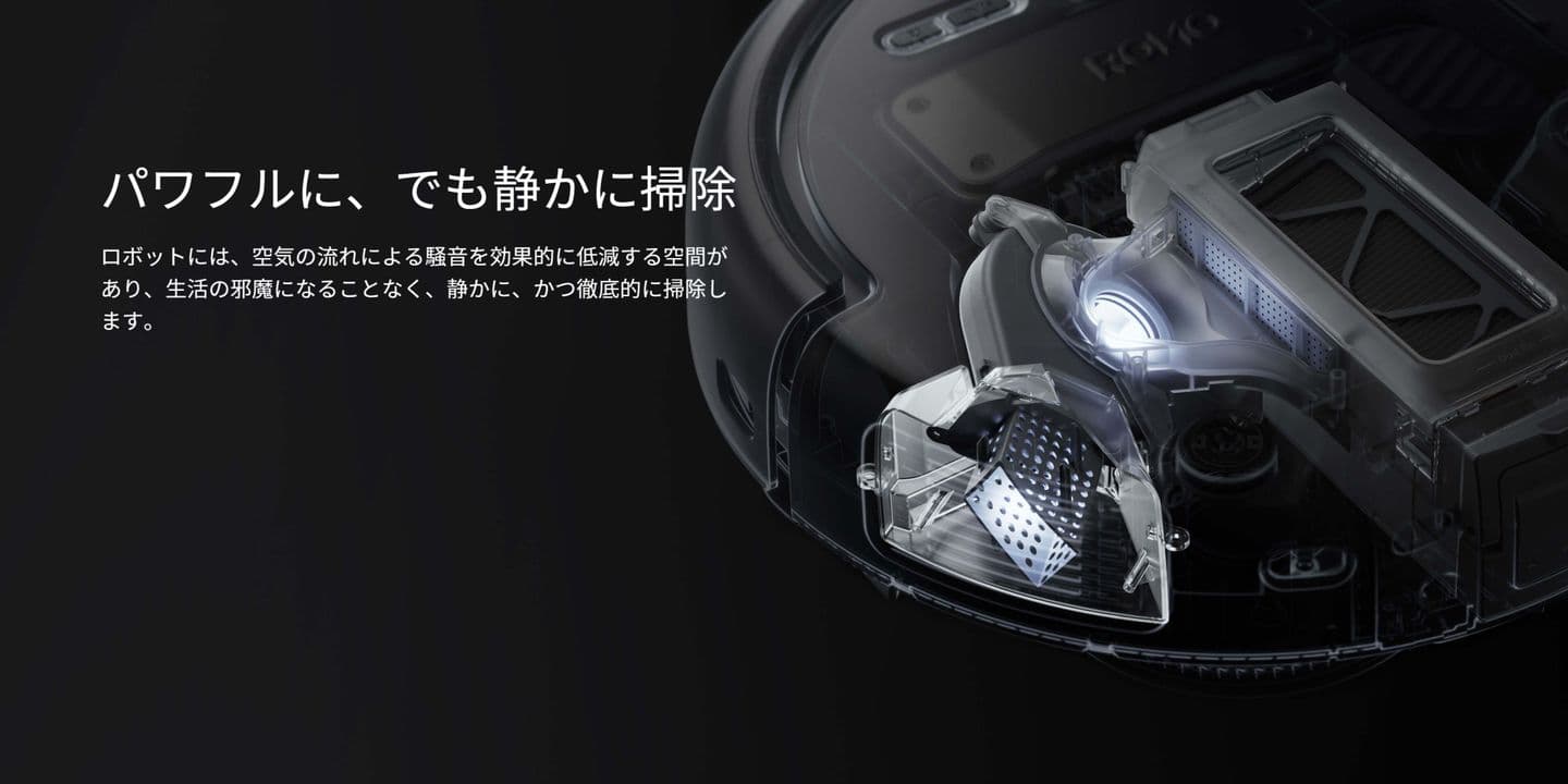 ベースステーションは、長いマフラーダクトとマフラー室を備えた3つの静音システムを搭載しています。集塵時の騒音を最大80%[2]低減するため、掃除中でも家族やペットの邪魔になりません。