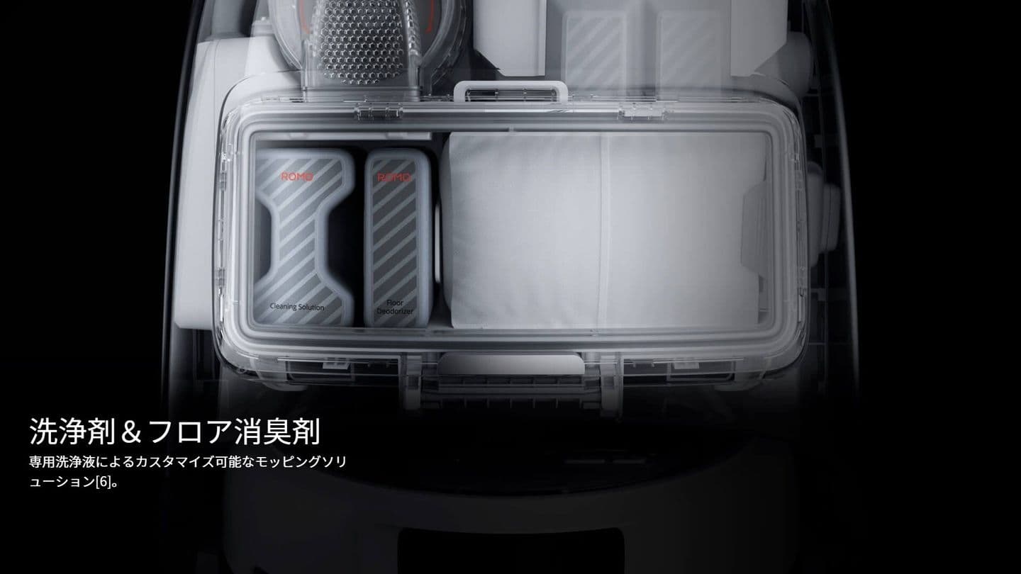 4.「DJI初」とは、2025年10月時点で、ROMOがDJI製品として初めて、高圧ウォータージェットによるベースステーション洗浄板の洗浄と大口径吸引ポートを組み合わせた機能を採用したことを指します。「メンテナンスフリー」はベースステーションの洗浄板のみに適用され、水タンクの補充やその他消耗品の交換は含まれません。