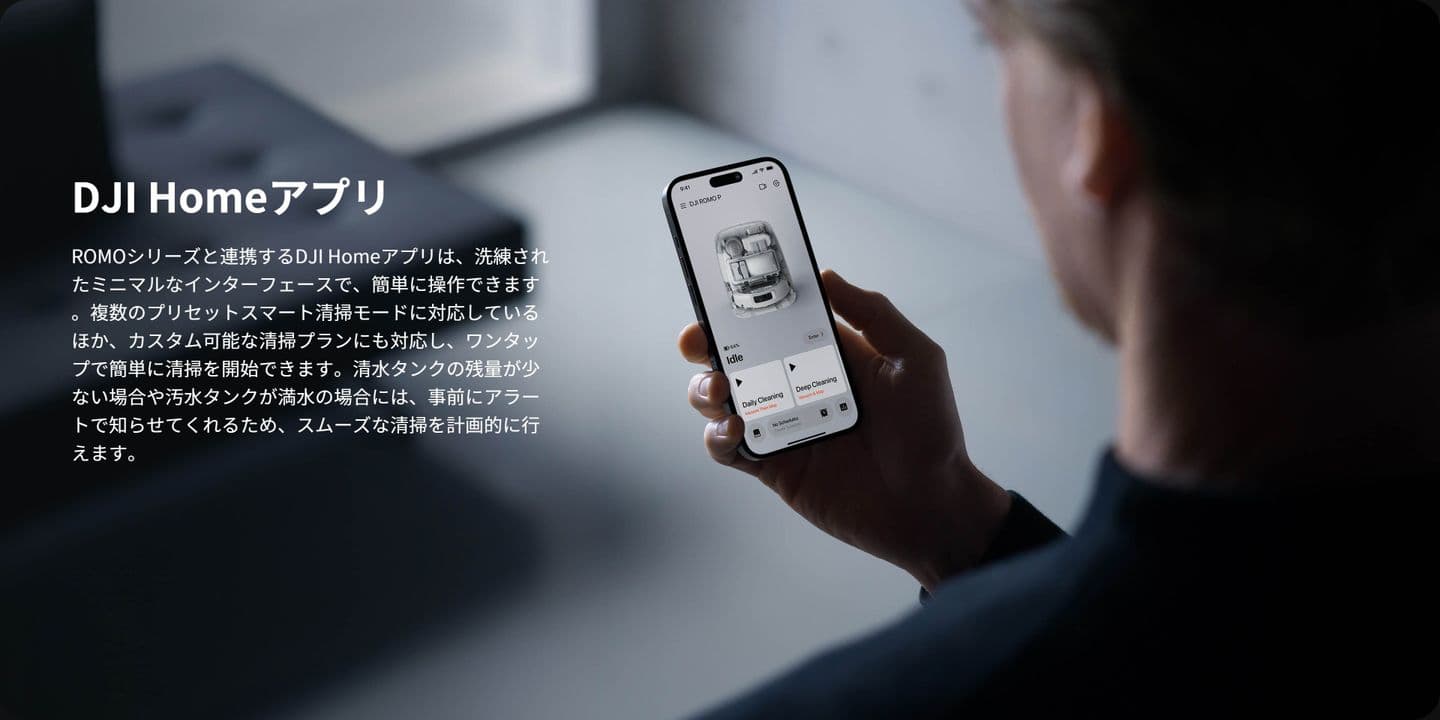 ROMO Pがあなたの家庭を瞬時に格上げします。このロボット掃除機には、フラッグシップドローンからインスピレーションを受け開発された最先端の認識技術とメカトロニクスが統合されています。高度なセンサーとスマートアルゴリズムを搭載したROMO Pは、硬い床面とカーペットの両方で、隅々まで徹底的に掃除します。さらに、スマートなセルフクリーニングシステムが自動でメンテナンスを行い、最小限の手間で、家の中を清潔に保つことができます。