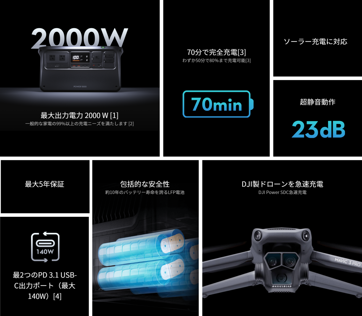 | 取扱説明書 | 下記よりダウンロード DJI POWER 1000 ダウンロードページ |