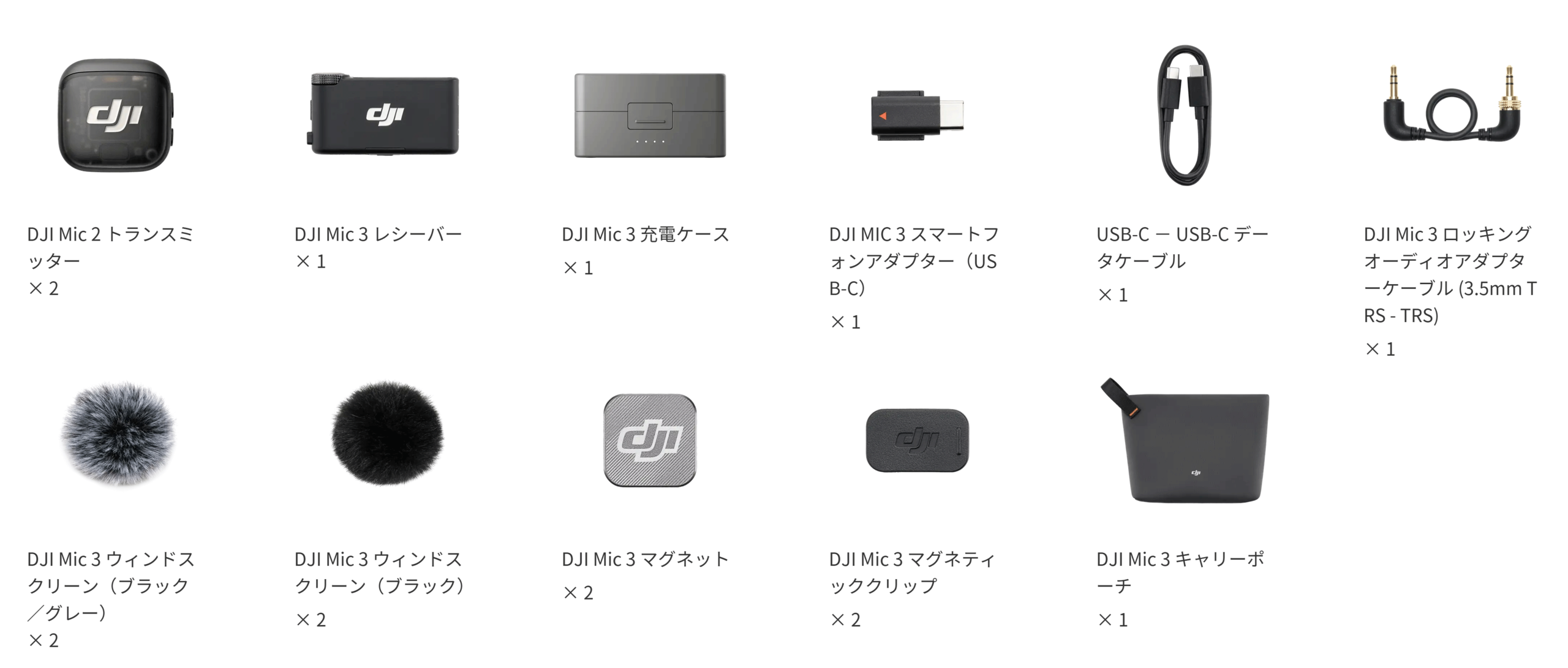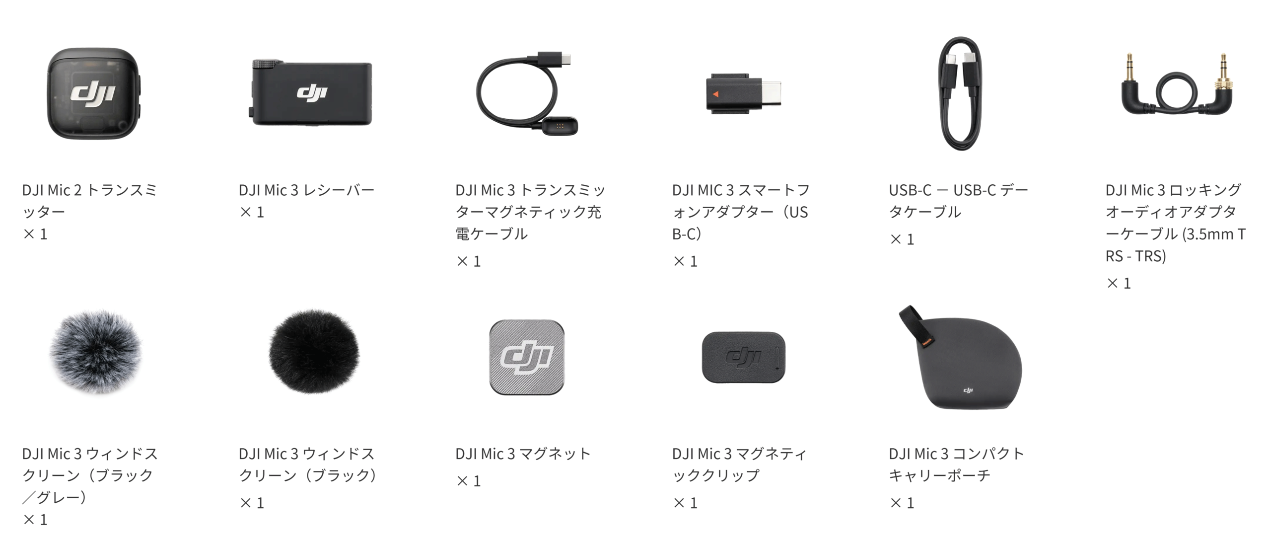 | 名称 | DJI MIC 3(2TX × 1RX + 充電ケース) |