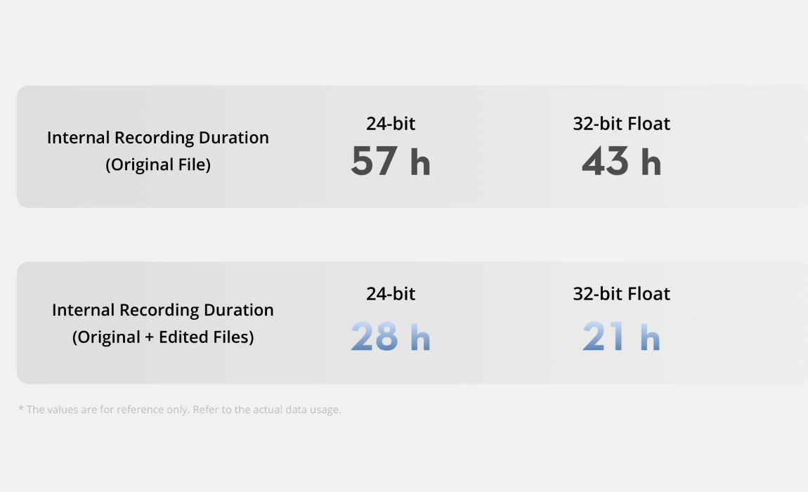 | 内部録音可能時間 | 24-bit(単一ファイル):57.3時間 |