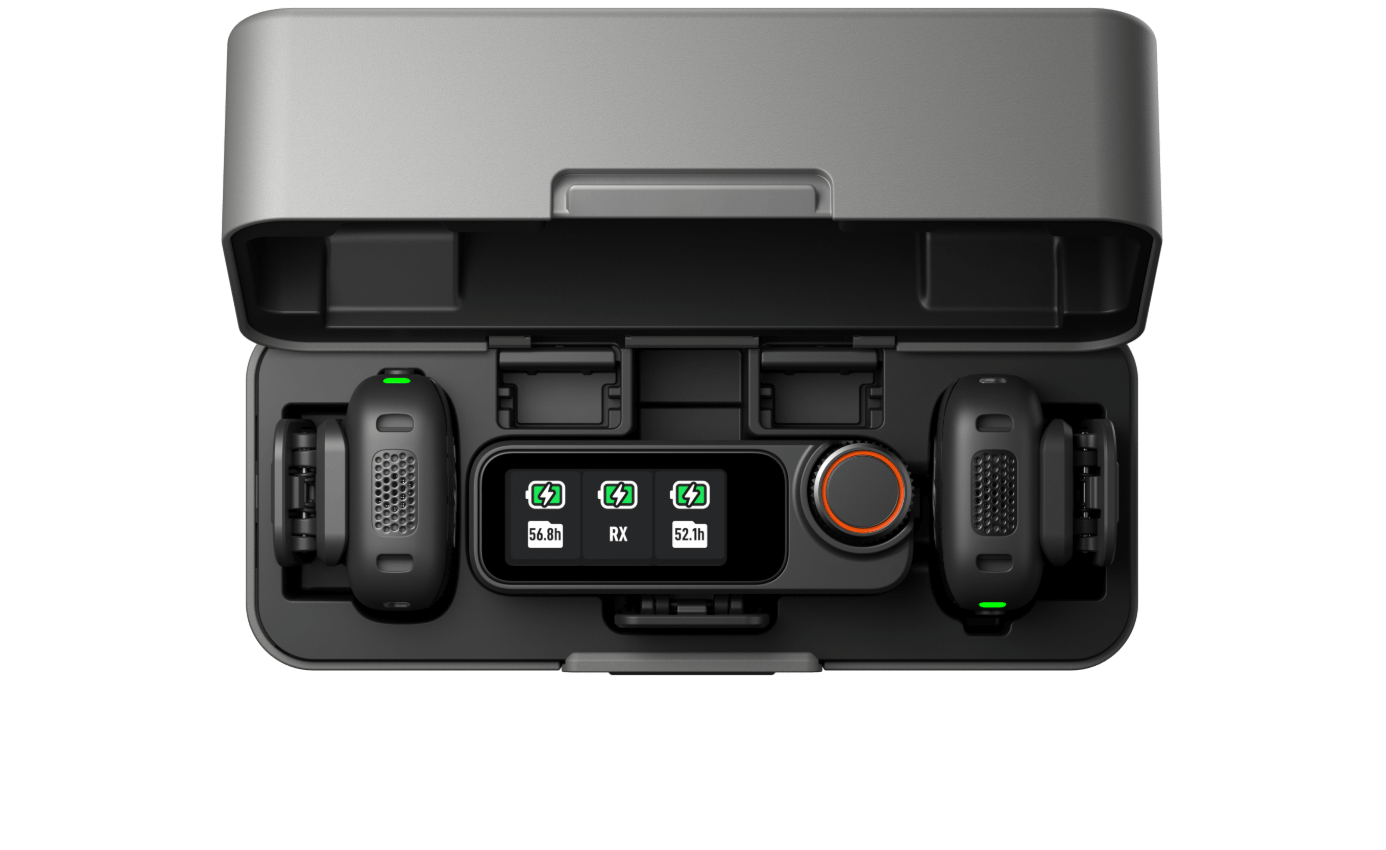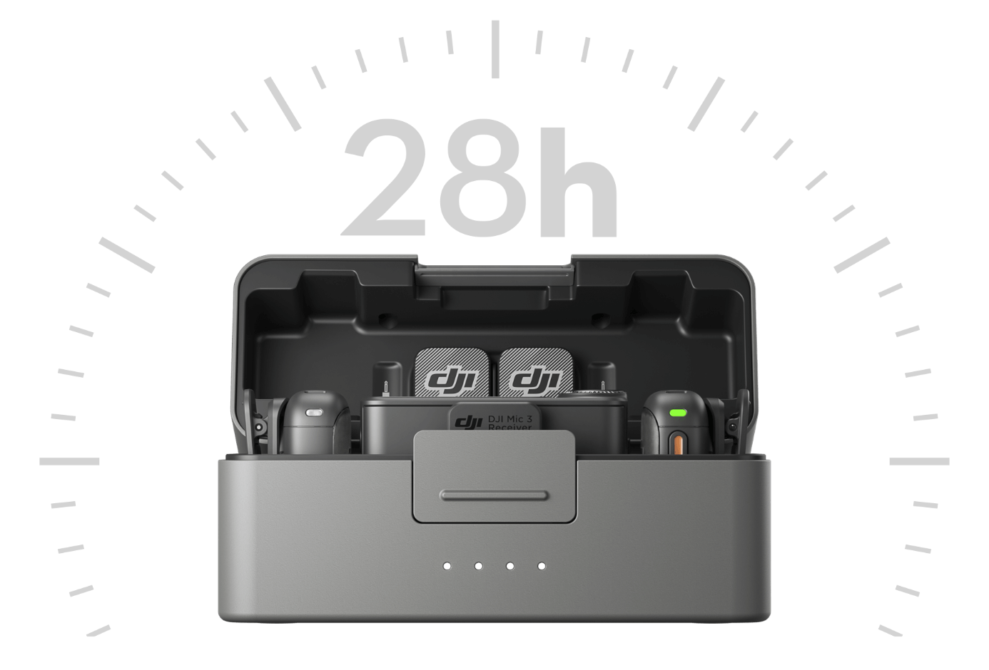 トランスミッターは最大8時間[14]、レシーバーは最大10時間[14]持続します。フル充電された充電ケースでは約2.4回フル充電でき、合計28時間の延長使用を実現します[13]。長時間の動画撮影やライブ配信を電力切れを心配せずに簡単にこなせます。