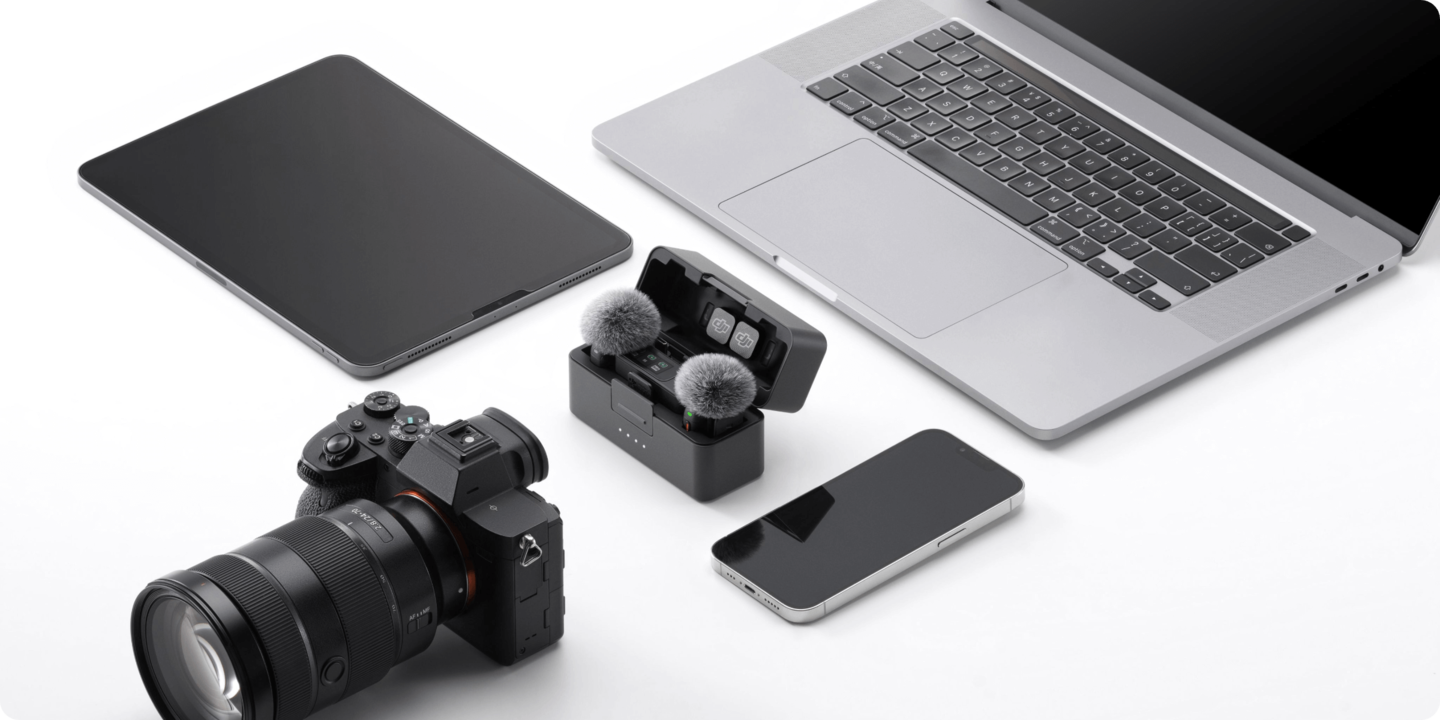 撮影が終わったら、充電ケースとUSB-Cデータケーブルを使用して、両方のトランスミッターをコンピューターまたはスマートフォン[12]に接続します。内部収録されたすべてのファイルを一度に転送でき、編集や共有がこれまで以上に簡単になりました。トランスミッターをDJI Mimoアプリに接続して音声ファイルをダウンロードすることもでき、ニーズに合わせて柔軟なエクスポートオプションを提供します。